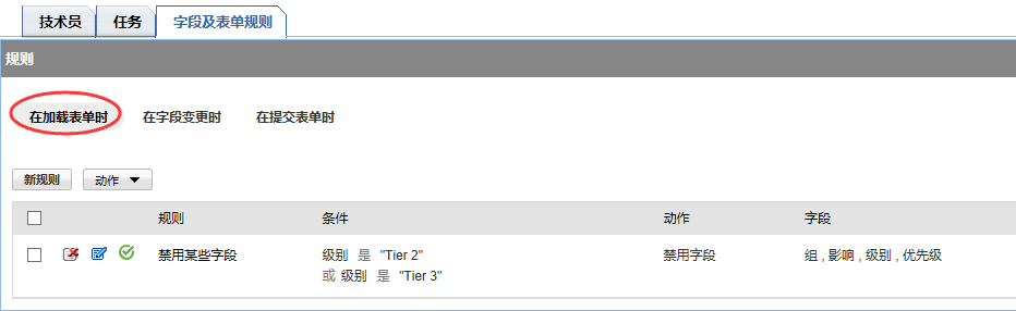 表单加载时: 它允许在请求表单被加载时执行规则。定义为这种类型的规则,至少要包含一个可执行的动作。动作将在检查匹配条件之后执行,如果没有定义匹配条件,则该动作将会直接执行。