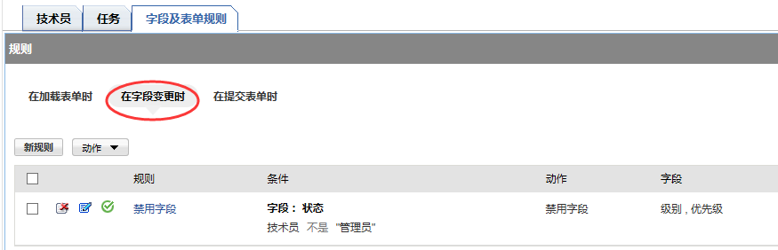 字段更改时: 它允许在请求的某个字段被更改时执行规则。定义为这种类型的规则,至少要包含一个可执行的动作。动作将在检查匹配条件之后执行,如果没有定义匹配条件,则该动作将会直接执行。规则将在规则中提到的字段值发生变更时被应用。