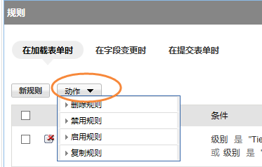 c. 点击保存按钮,创建的规则将显示在相应的事件类型(在加载表单时)下的列表视图中。