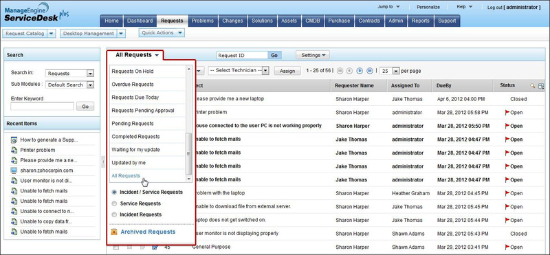 The 'All Requests' filter in the request list view displays all the requests that have been created so far, irrespective of the status. But as the number of requests increases, the performance of ServiceDesk Plus gradually slows down.