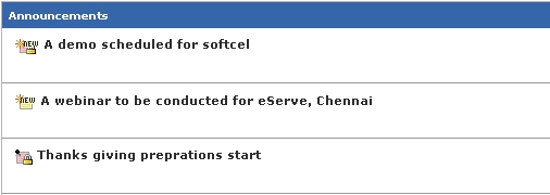 ServiceDesk Plus可以允许您面向组织或面向技术员发布公告。公告板位于主页的我的视图画面的下面。您可以根据需要添加,编辑,删除公告。