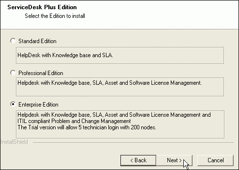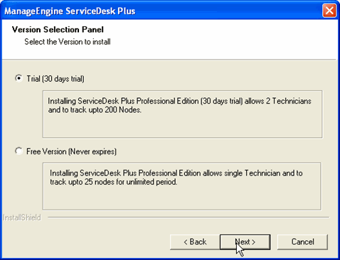 选择要安装的ServiceDesk Plus版本。