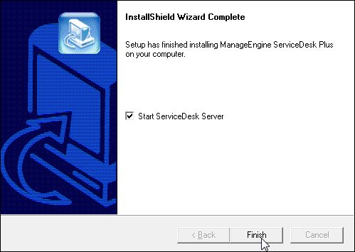 安装过程结束后,将出现完成向导页面,默认将选中启动ServiceDesk的选项,您可以禁用它。