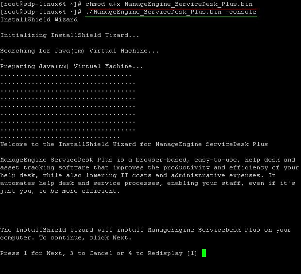 ./ManageEngine_ServiceDesk_Plus.bin -console