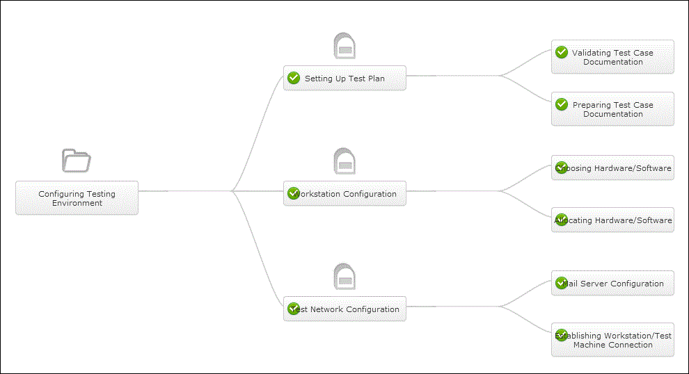 ,然后选择项目概览图),它以地图的方式,为您呈现整个项目的里程碑和任务。该视图中也同时标示了里程碑/任务的完成情况,如果完成,则用 标记。