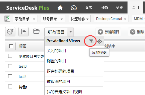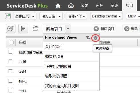 - 点击所有项目的下拉菜单,将会显示预定义视图列表