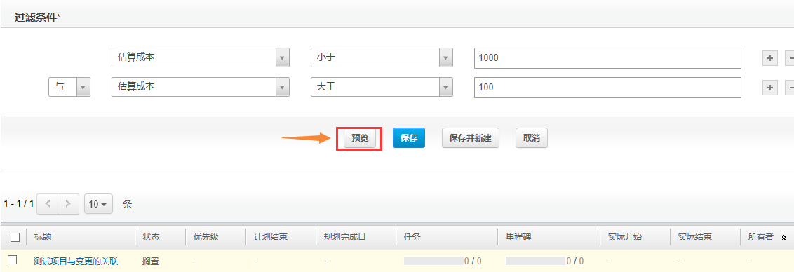 - 点击预览按钮,可以预览满足该过滤条件的项目。
