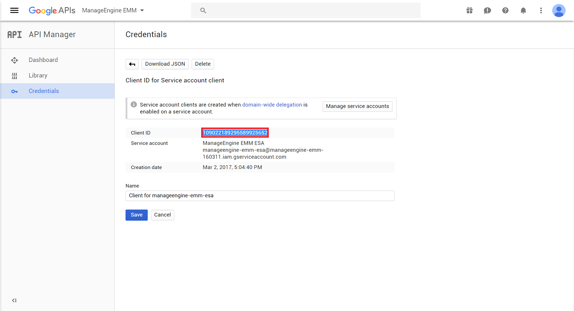 15. 选择启用Google应用程序域范围授权复选框。在选择复选框时,对话框窗口将展开。现在请在准许面板中输入产品名称然后点击保存。