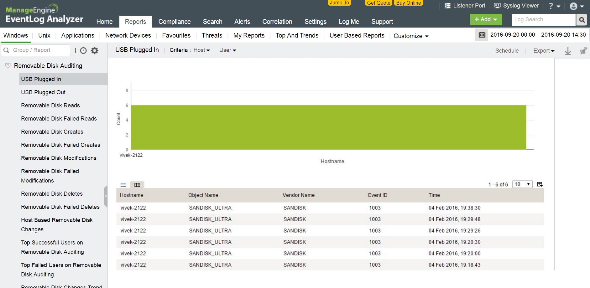 使用EventLog Analyzer审计可移动设备