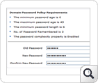 Ensure strong user passwords that resist various hacking threats with ADSelfService Plus by enforcing Active Directory users to adhere to compliant passwords via displaying password complexity requirements.